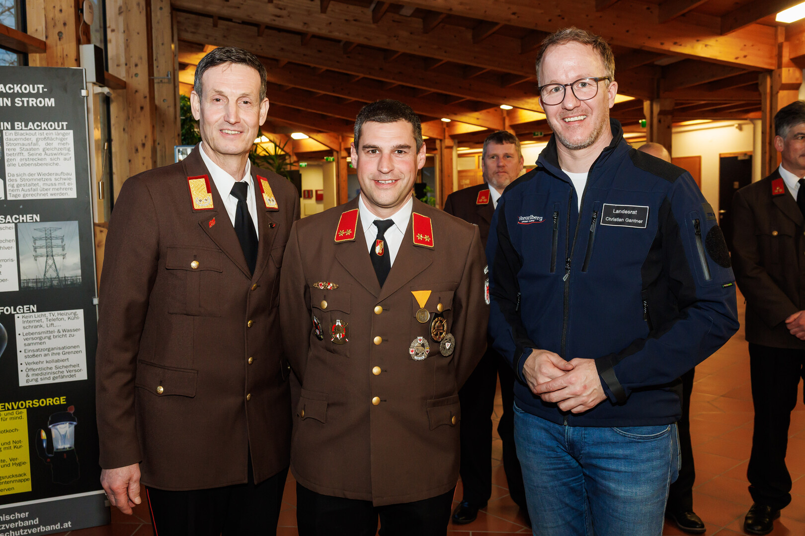 400 Delegierte und Gäste, darunter Landeshauptmann Markus Wallner, Bürgermeister der Gemeinde Nüziders Florian Themeßl-Huber, zahlreiche Vertreter der Hilfs- und Rettungsorganisationen sowie Vertreter der Feuerwehren aus dem benachbarten Ausland waren beim Verbandstag der Vorarlberger Feuerwehren im Sonnenbergsaal Nüziders.